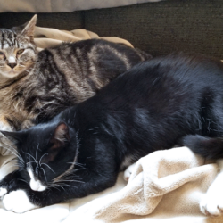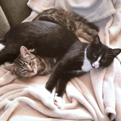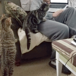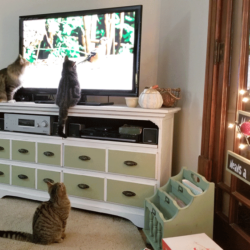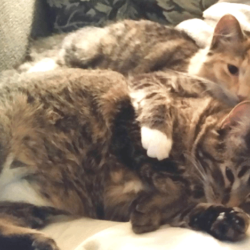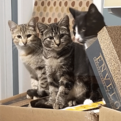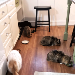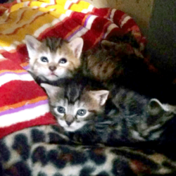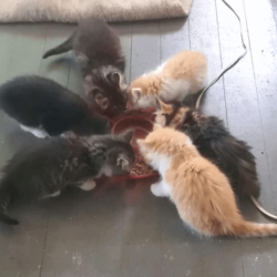All of these cats were neighborhood feral cats that we have “rescued” and domesticated so they can go to homes. If they are with us long enough we have them spayed/neutered and they get their shots.