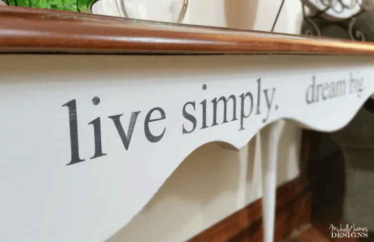 This table is in my living room and I love the simplicity of it. These plain text stencils gave it some charm.